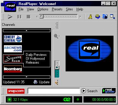 Na Internetu můžete poslouchat rádio nebo sledovat televizní program. K tomu vám stačí jen zvuková karta se softwarem a program RealTime nebo RealPlayer, který je součástí instalace Internet Exploreru. Bohužel, ne typické instalace, ale můžete si jej vybrat při "volitelné" instalaci.