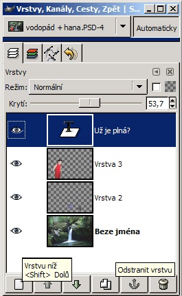 Vrstvy můžeme vytvářet, přejmenovávat a mazat. Při vložení obsahu