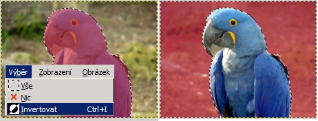 Často je výhodné vybrat pozadí obrázku (bývá jednotnější) a pak provést doplněk (inverzi) výběru.